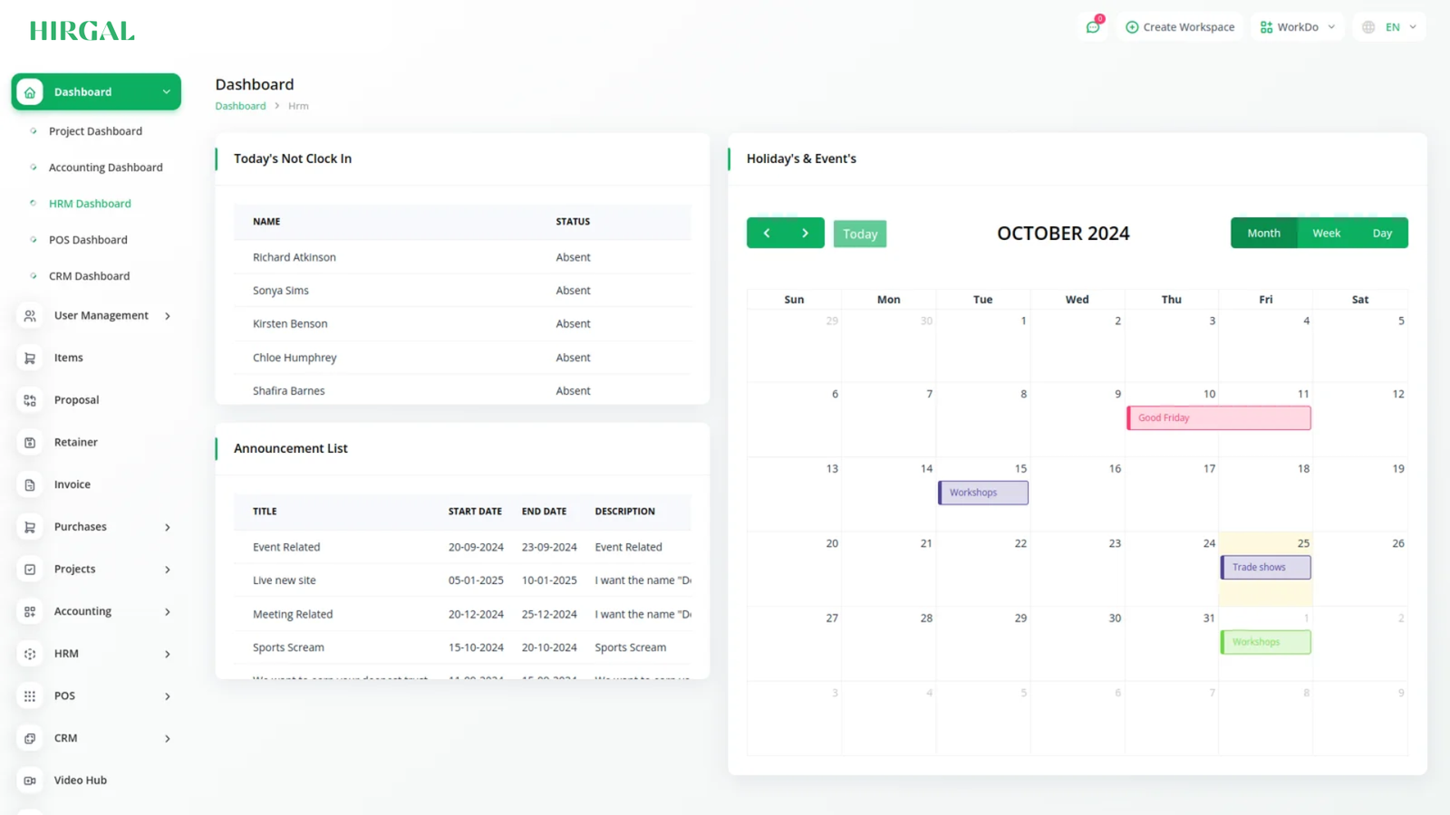 With Hirgal, you can conveniently manage all your business functions from a single location.